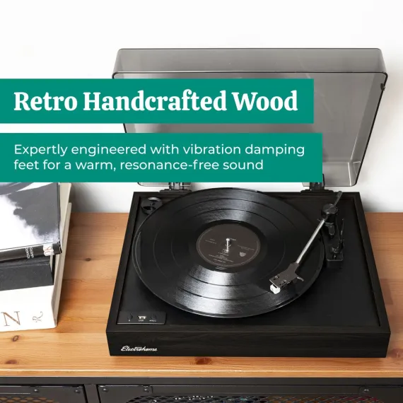 Easily connect the turntable wirelessly to Bluetooth speakers or wireless headphones, and record your vinyl collection to MP3 digital files to preserve your precious music collection for life in the touch of a button. Play back instantly through USB drive, no additional software needed - it's that easy!