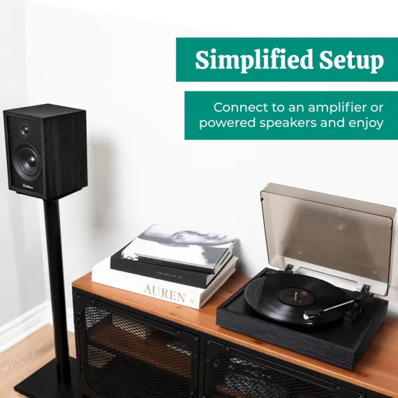 Developed with an aluminum tonearm isolated from the anti-resonant platter to improve record groove contact and reduce unwanted vibrations from affecting your music. Paired with Audio-Technica's diamond-tipped needle renowned for its durability and reputation for delivering accurate sound reproduction with extended playing time.