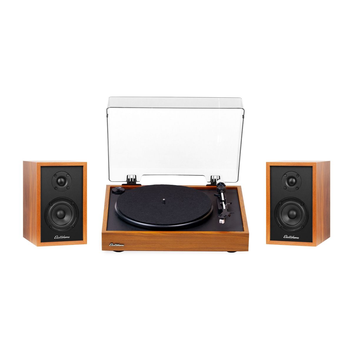 Electrohome Montrose Vinyl Record Player with Berkeley Powered Bluetooth Bookshelf Speakers for Warm Natural Sound, Teak - Teak