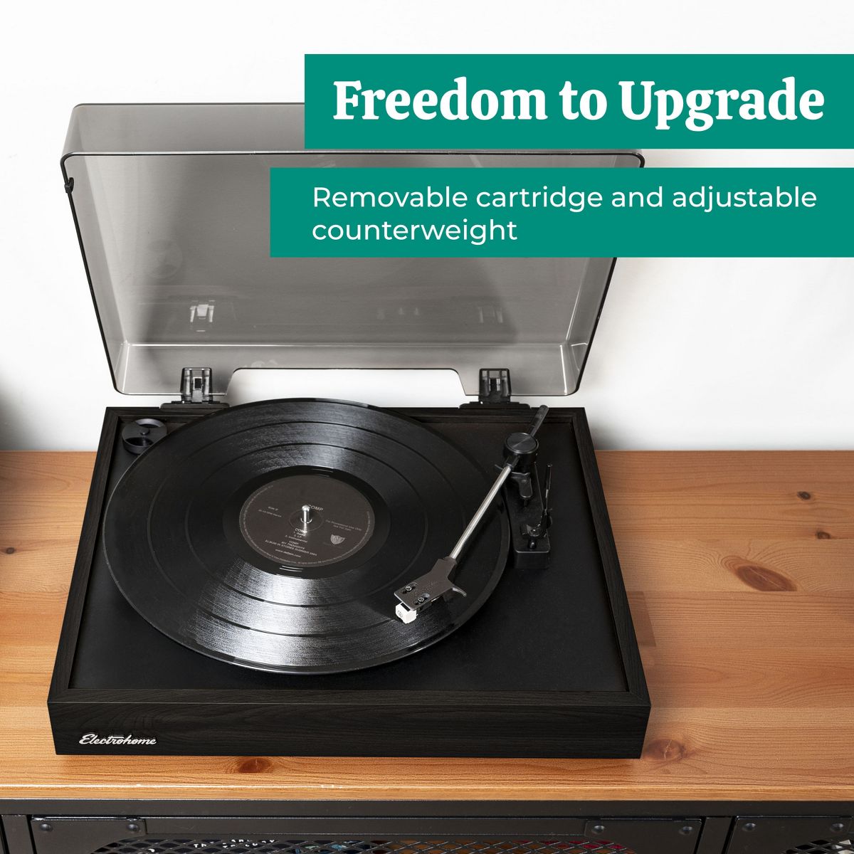 Use the adjustable counterweight to set the ideal tracking force for optimal audio accuracy and to protect your records. The removeable cartridge and adjustable counterweight provide freedom to upgrade to a higher performance cartridge.