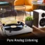Expertly designed height-adjustable rubber isolation feet, with three points of minimal contact, results in decreased resonance. The included 3mm acrylic mat and the upgraded dampened aluminum anti-resonant platter provide an immersive 3-dimensional soundstage for a detailed high fidelity listening experience, that recreate music the way the artist intended.