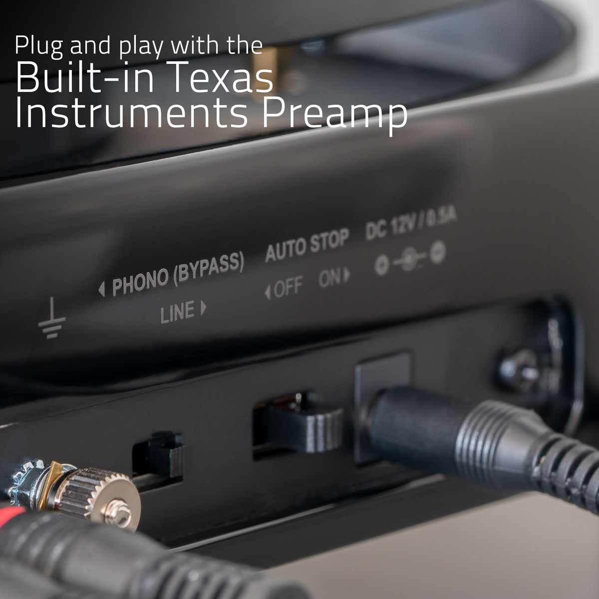 Your music will sound richer with the included Audio Technica AT91 conical stylus; renowned for its freedom from noise and distortion, clarity on musical peaks, and channel balance. Captivating signal clarity is produced with features like gold plated RCA line outputs, and the high-performance Texas Instruments preamp that ensures high fidelity sound in its truest form.