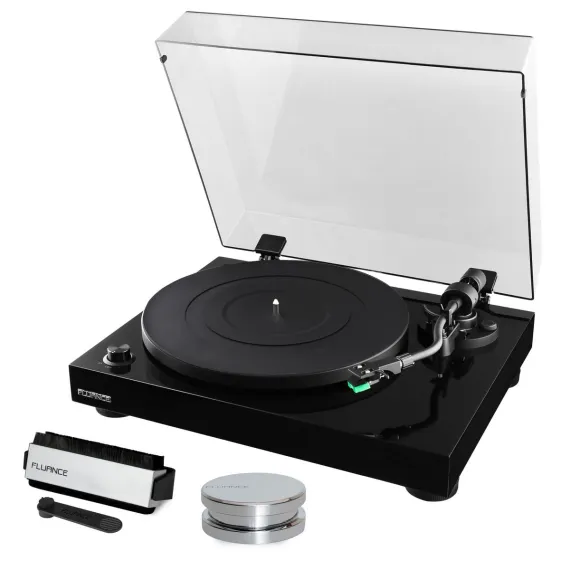 Fluance's RT81 High Fidelity Turntable and Accessory Kit plays vinyl records with stunning quality that achieves the purest sound reproduction. Experience perfect analog playback and establish closer contact between your record and the turntable platter with the Record Weight reducing resonance and undesired vibrations while extending the life of your records and turntable stylus with the Vinyl Cleaning Kit.