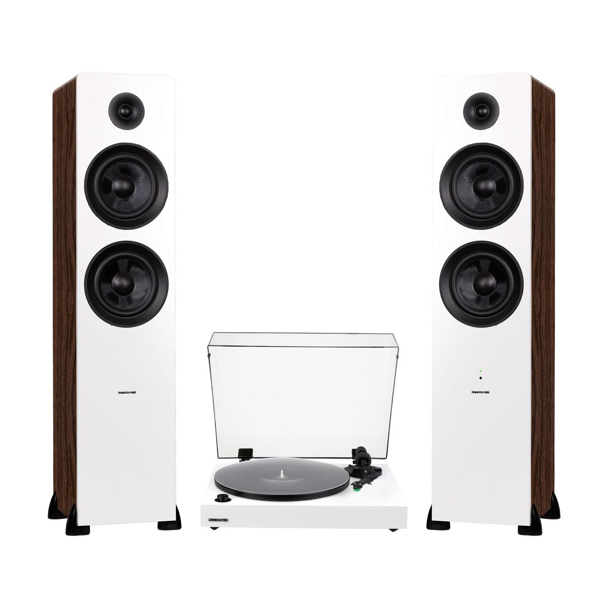 What's Included: RT81P Turntable, Dust Cover, 2x Dust Cover Hinges, Headshell with Audio Technica VM95E Cartridge, Counterweight, Aluminum Anti-Resonant Platter, Acrylic Platter Mat, Rubber Belt, 45 Adapter, Bubble Level, 3ft RCA Cable With Ground Wire, 5ft 100V - 240V (50/60Hz) AC Power Adapter, Ai81 Powered Floorstanding Speakers (pair), Remote Control, 2x AAA Batteries, 6ft Power Cable, 8ft 18 Gauge Speaker Wire, Quick Start Guide, Fluance Catalog, 2 Year Manufacturer's Warranty