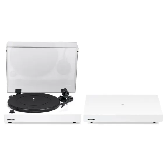 What's Included: RT82 Turntable, Dust Cover + Hinges, Bubble Level, Headshell with Ortofon OM10 Cartridge, Counterweight, Metal Platter with Belt, Rubber Platter Mat, 100-240V (50/60Hz) AC Power Adapter, 3ft RCA Cable, 2x 3ft Ground Wire, 45 Adaptor, Motor Pulley Cap, Cotton Gloves, IB40 Isolation Base, User Manual, 2 Year Manufacturer's Direct Warranty
