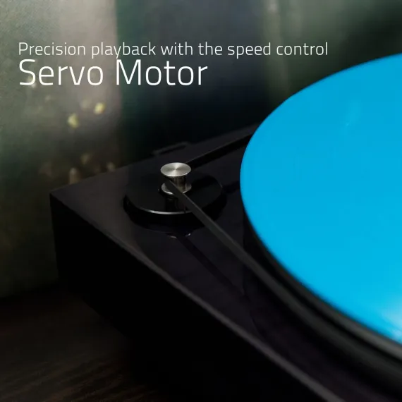 The precision servo-controlled belt drive motor with speed regulating optical sensor continuously measures and adjusts variances in linear velocity and acceleration within a few hundredths of a percent at a wow and flutter of 0.07%. The decoupling of the drive from the plinth suppresses motor vibrations and noise from reaching the stylus. This maintains accurate speed and significantly reduces rumble so your records sound perfect at every play.