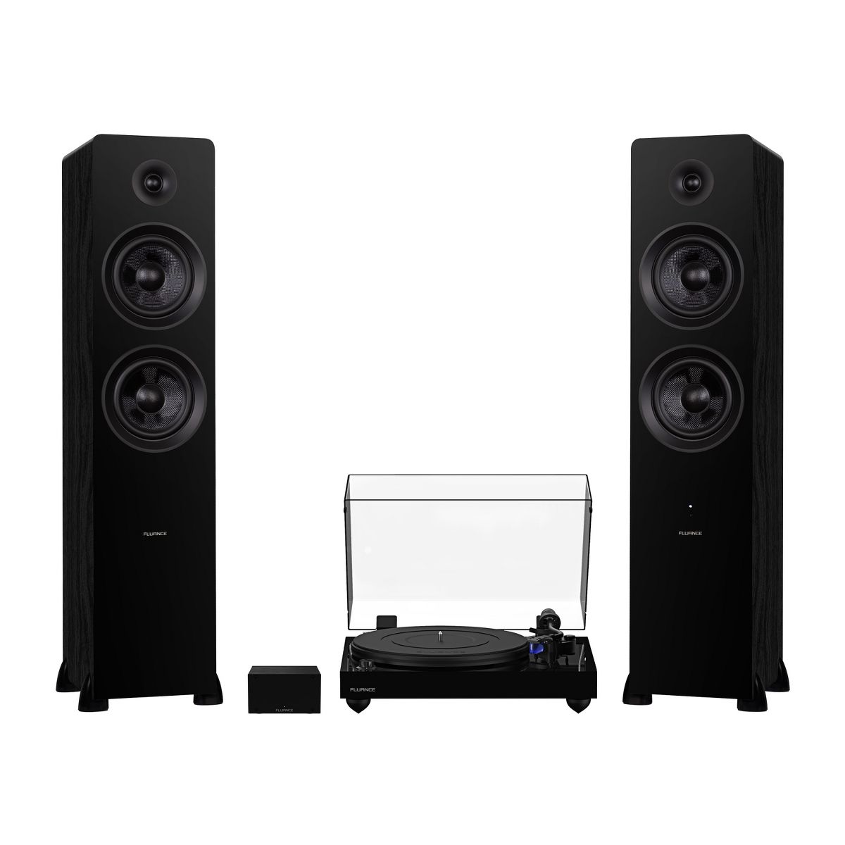 Fluance RT84 Reference High Fidelity Vinyl Turntable, PA10 Phono Preamp and Ai81 Elite Powered Floorstanding Speakers - Black / Black