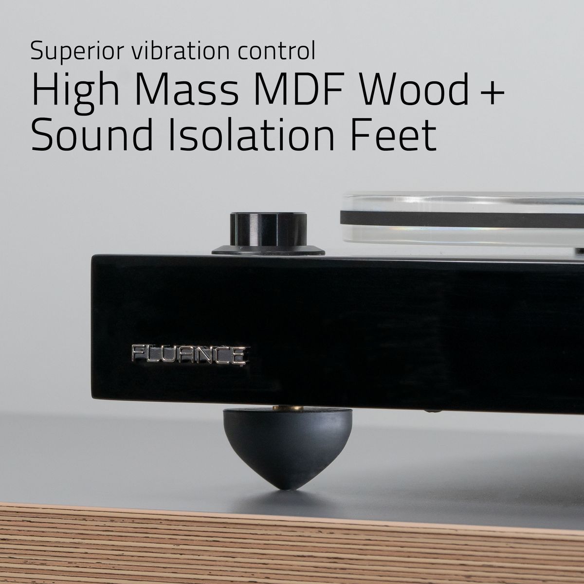 The high density and greater mass of the acrylic provide increased inertia to achieve a consistent speed, while damping unwanted vibrations by trapping and dissipating the energy. Acrylic has an analogous resonant frequency to vinyl records to aid in the cancellation of undesirable reverberations resulting in a 3-dimensional soundstage with improved bass definition, a richer midrange, and greater signal clarity.