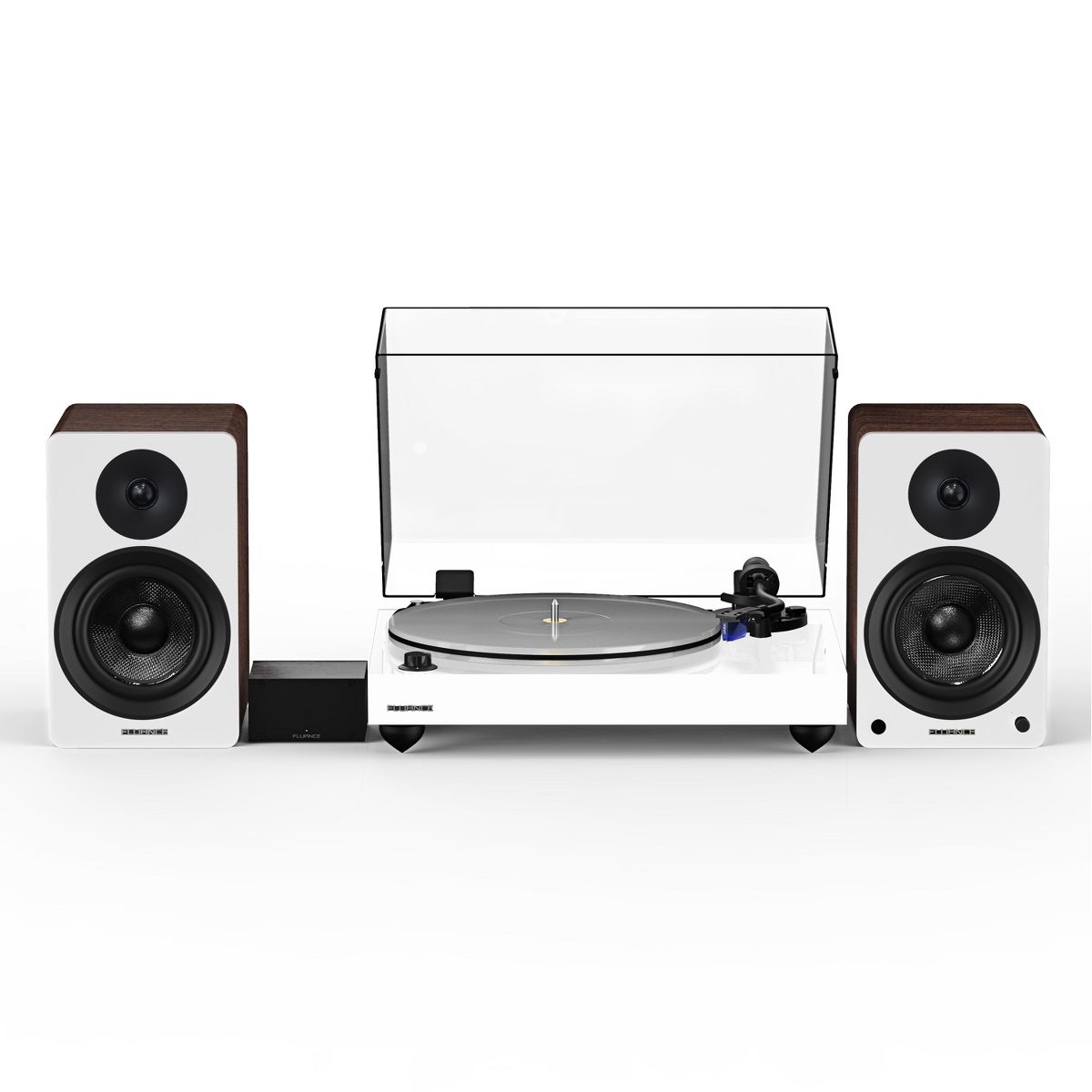 Everything you need for the ultimate music experience in one convenient package. Hear breathtaking stereo sound with the Fluance Reference High Fidelity Turntable paired with the RIAA Equalized PA10 Phono Preamp connected to the powerful Ai41 Powered 5" Stereo Bookshelf Speakers for a pure analog listening experience.