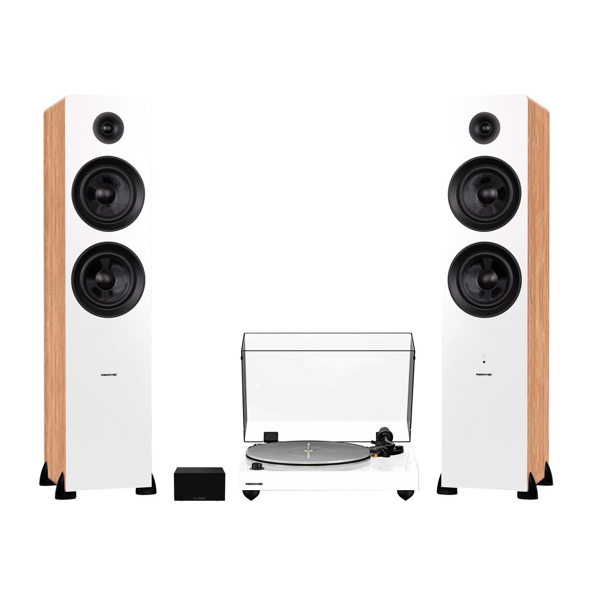 Fluance RT85N Reference High Fidelity Vinyl Turntable, PA10 Phono Preamp and Ai81 Elite Powered Floorstanding Speakers - Walnut / White Walnut