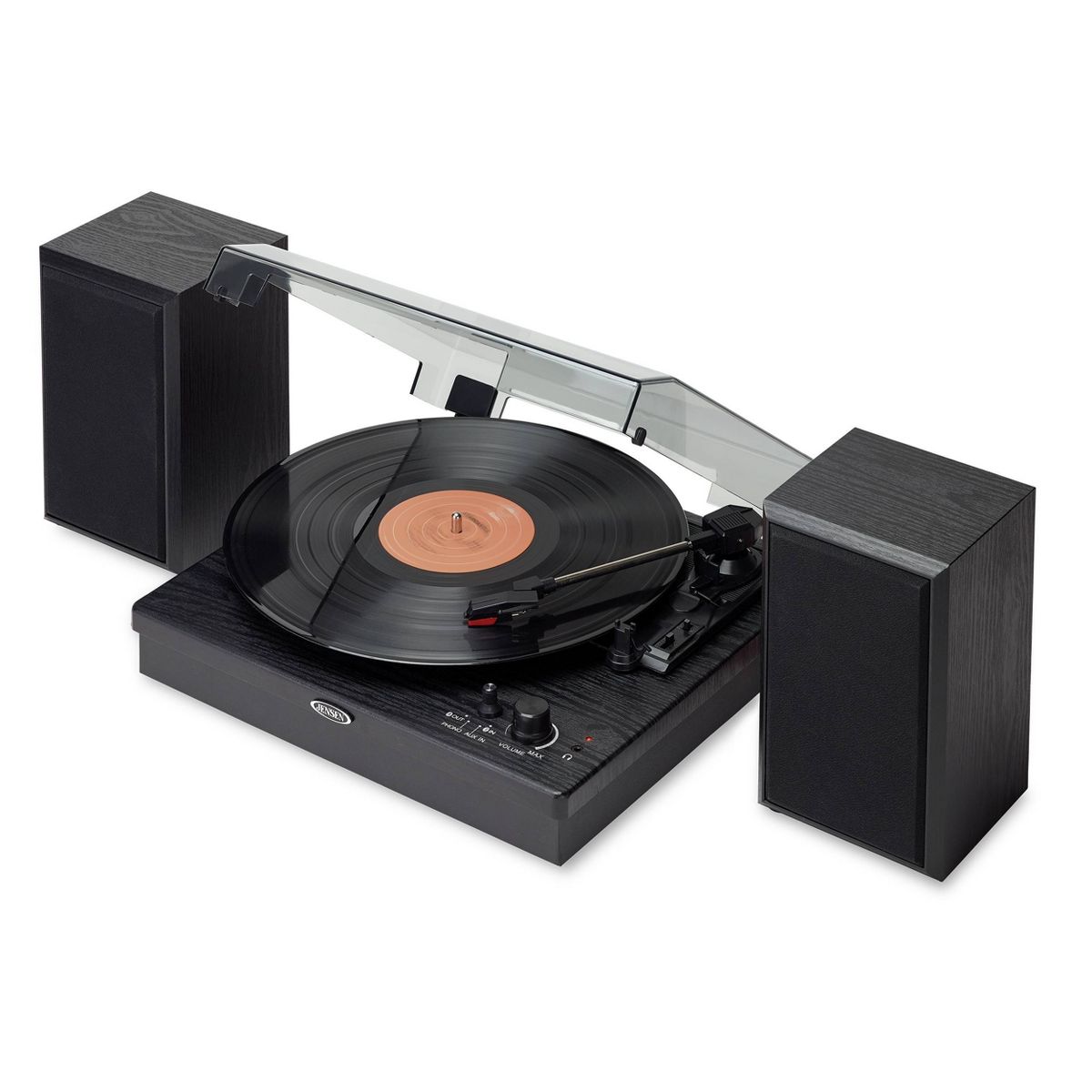 JENSEN 3-Speed Stereo Turntable with Speakers and Dual Bluetooth Transmit/Receive - Black: Vinyl Record Player