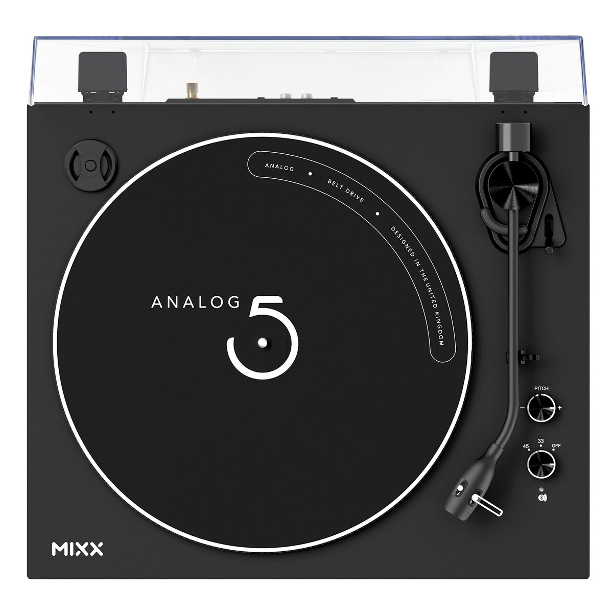 Mixx® Analog 5 2-Speed Belt-Drive Manual Vinyl Record Player with Bluetooth®, RCA and Line Outputs, Premium Cartridges, and 45-RPM Adapter in Black