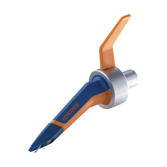 Redesigned from the ground up, the Concorde DJ cartridge features a more robust stylus tip with larger cutout, as well as a replaceable textured grip and handle. The Concorde DJ cartridge is a suitable model for both scratch and backcueing use, providing rigidity and excellent groove handling. The DJ's spherical stylus tip provides superior audio while at the same time having very low record wear. It produces an impressive 6mV output and 20Hz–20kHz frequency response for uncompromising sound quality with excellent low end. Easy connectivity to the tonearm makes setup quick and easy in any performance scenario.The Concorde DJ's larger cutout lets see precisely where 're putting the needle down, even in low-light conditions where DJs often find themselves working. When 're deep in the mix, cueing up next track or sample, every second counts. can't afford to waste time guessing where the needle is going to touch the record. Likewise, want to see with a quick glance how far way that drop—or the end of the track—is from needle. Since the launch of the original Concorde cartridges more than 25 years ago, DJs have embraced the convenience, sound quality, and industrial design of the Concorde. With the launch of the Concorde MKII, Ortofon has listened to the demands of vinyl DJs of all types to develop a superior cartridge series with an unprecedented level of durability, groove holding, and sound quality.