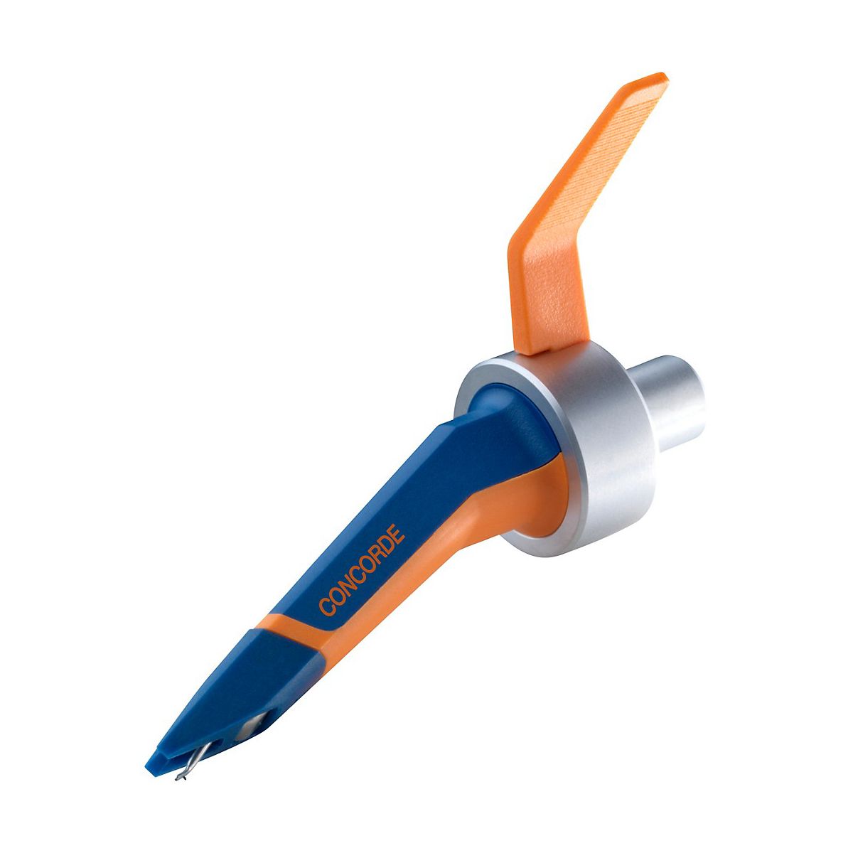 Redesigned from the ground up, the Concorde DJ cartridge features a more robust stylus tip with larger cutout, as well as a replaceable textured grip and handle. The Concorde DJ cartridge is a suitable model for both scratch and backcueing use, providing rigidity and excellent groove handling. The DJ's spherical stylus tip provides superior audio while at the same time having very low record wear. It produces an impressive 6mV output and 20Hz–20kHz frequency response for uncompromising sound quality with excellent low end. Easy connectivity to the tonearm makes setup quick and easy in any performance scenario.The Concorde DJ's larger cutout lets see precisely where 're putting the needle down, even in low-light conditions where DJs often find themselves working. When 're deep in the mix, cueing up next track or sample, every second counts. can't afford to waste time guessing where the needle is going to touch the record. Likewise, want to see with a quick glance how far way that drop—or the end of the track—is from needle. Since the launch of the original Concorde cartridges more than 25 years ago, DJs have embraced the convenience, sound quality, and industrial design of the Concorde. With the launch of the Concorde MKII, Ortofon has listened to the demands of vinyl DJs of all types to develop a superior cartridge series with an unprecedented level of durability, groove holding, and sound quality.