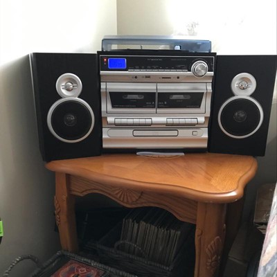 Love this little stereo. I can play all my music now. The sound is good but I would like a little more bass or the option with my albums but other than that this is perfect for my needs.