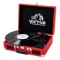 The Victor® Metro Dual-Bluetooth® Suitcase Turntable is ready to play your vinyl records on its 3-speed turntable. The Dual Bluetooth® feature allows streaming of your vinyl records to your own external Bluetooth® speaker or plays audio from your smart device through the Metro's built-in speakers. The 3.5-mm aux input and RCA stereo audio output allow for even more additional playback options. The convenient carrying handle and clasp let you transport your record player to new locations with easy portability.