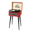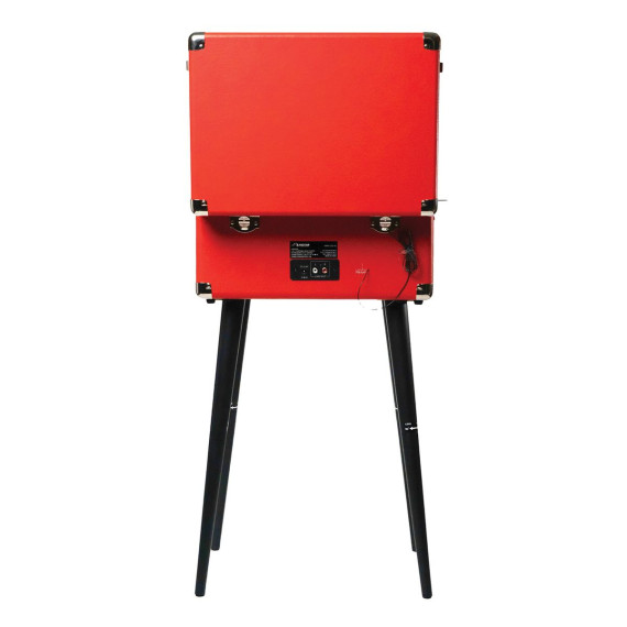 The Victor® Andover 5-in-1 Suitcase-Style Record Player features chair height legs for a fun retro style. The built-in 3-speed turntable and FM radio are ready to play all your favorite songs! The Dual-Bluetooth® feature allows streaming of your vinyl records to an external Bluetooth® speaker (sold separately) or plays music from your smart device through Andover's built-in speakers. The 3.5-mm aux Input and RCA stereo output allow for even more additional playback options. The Andover can also be used on a tabletop as base height feet are included.