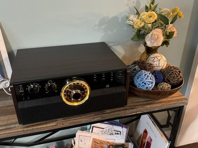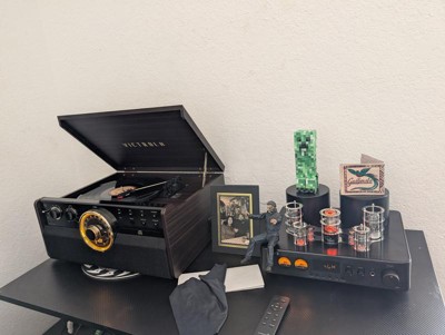 Victrola Empire Mid Century Modern Bluetooth Cassette Record Player - Gray: Turntable, CD Player