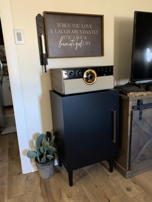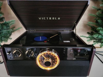 The Victrola Empire 6-in-1 Bluetooth Record Player perfectly encapsulates the spirit of mid-century modern style. Combining classic, sleek aesthetic with modern technology, it features a 3-speed, belt-driven turntable, as well as wireless Bluetooth connectivity. CD and cassette player, along with a 3.5mm aux-in jack, allows you to listen to any of your favorite tunes, or jam out to the built-in FM radio.