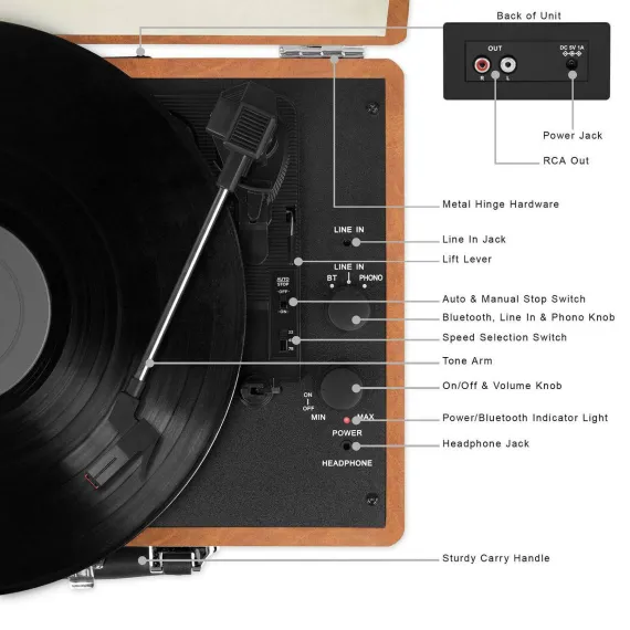 Victrola Journey 3-Speed Bluetooth Suitcase Record Player - Brown: Belt Drive Turntable