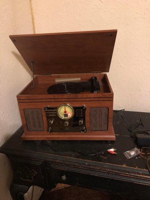 The Victrola Navigator Record Player combines modern technology with classic design. The Navigator features a 3-speed turntable, designed to play all your favorite 33 1/3, 45, and 78 RPM records! Listen to your favorite CDs and tapes with built-in cassette and CD players, or tune into your favorite station with the FM radio. Bluetooth connectivity also allows you to stream music from your smart device through the Navigator's built-in stereo speakers. Real wood construction means that the Navigator is built to last, creating music memories for years to come.