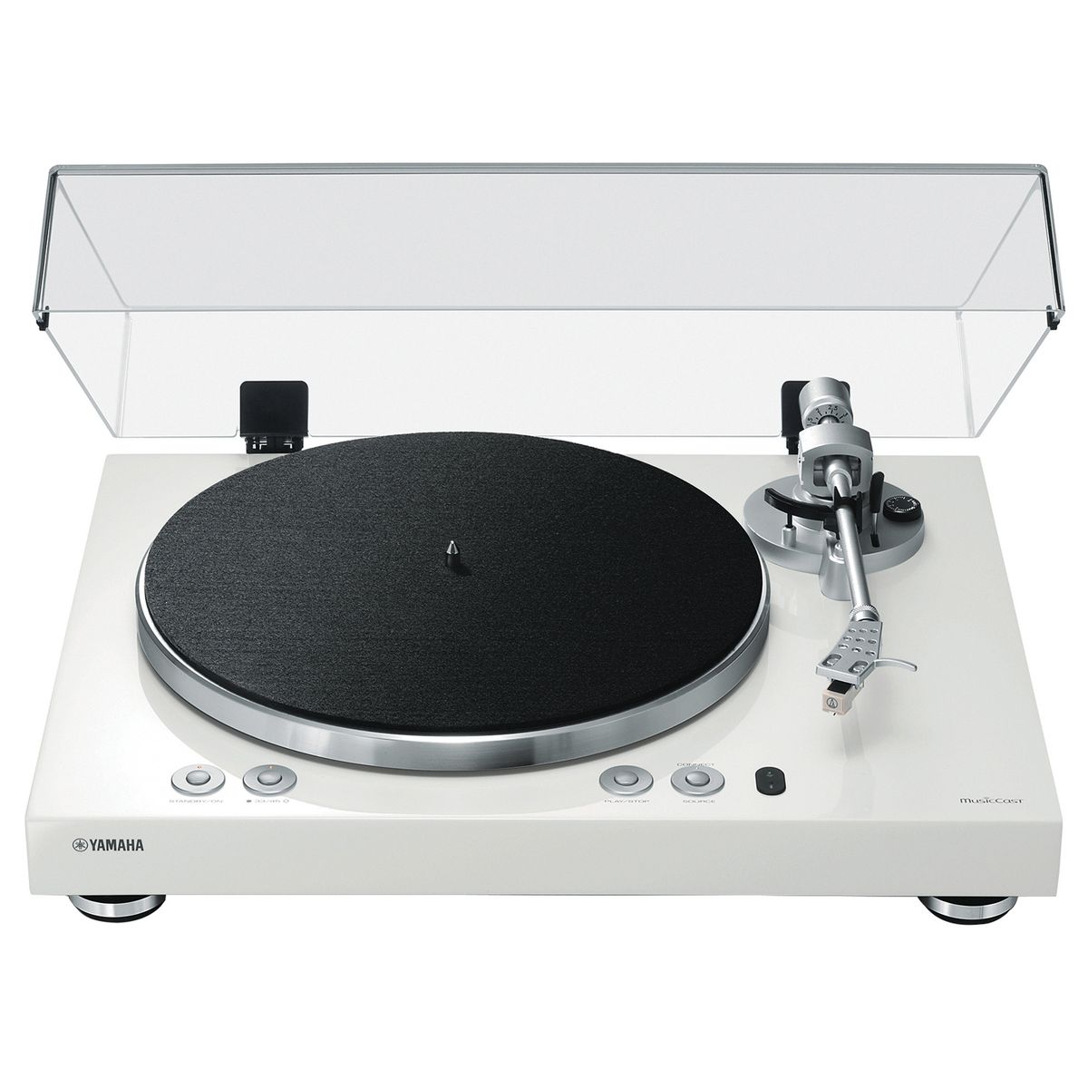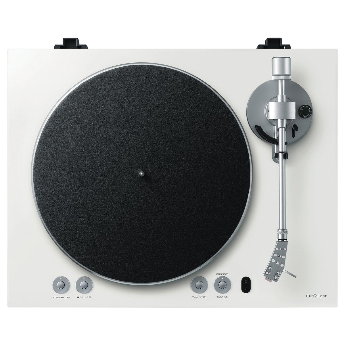 Vinyl unleashed. The MusicCast® VINYL 500 Turntable from Yamaha® Stream enables your records and music services to stream to MusicCast® speakers (sold separately) with no wires attached and no receiver required. Wi-Fi® connection ensures exceptional sound quality. With a MusicCast® multi-room system, hear your records throughout your entire home. You can also stream music from the VINYL 500 to Bluetooth® headphones for private listening or to your own Bluetooth® speakers. And once the record ends, you can keep the music going by streaming music services via Wi-Fi®, AirPlay®, Spotify® Connect, or Bluetooth®. The turntable itself is meticulously designed to ensure the most faithful reproduction of sound and features a straight tonearm for an open sound as well as a belt-drive motor to minimize noise caused by vibrations. The finish shows off your style and your records. The record player also works with the MusicCast® app, Alexa®, Google Assistant™, and Siri®.