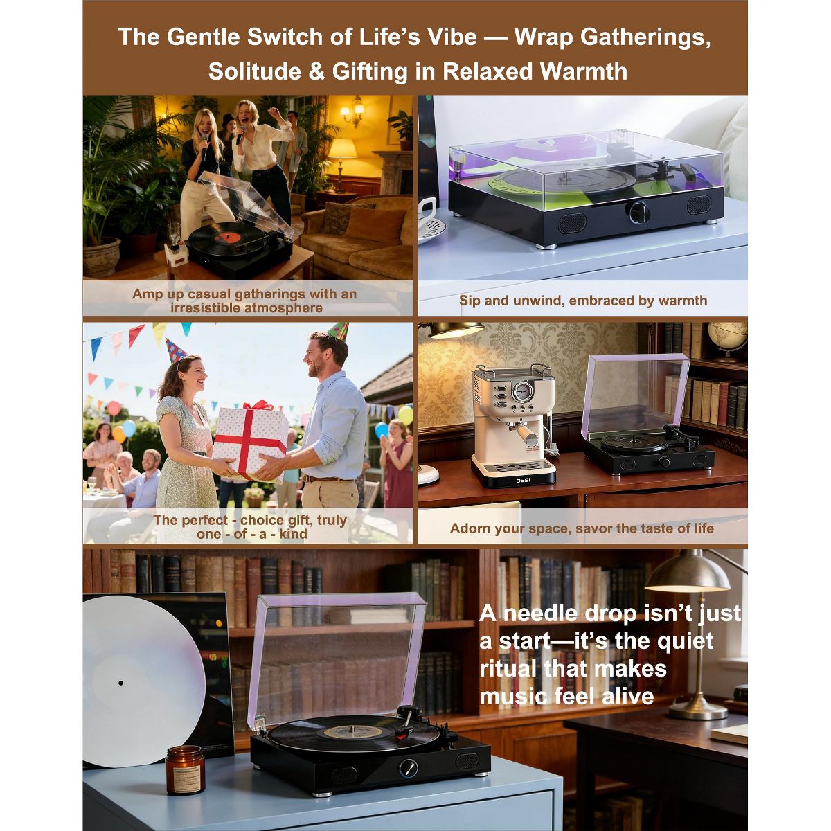 YARDSIGHT Record Player Turntable with Built-in Speakers, 3-Speed Belt-Drive for 7"/10"/12" Records, Retro Portable Turntable for Home Entertainment