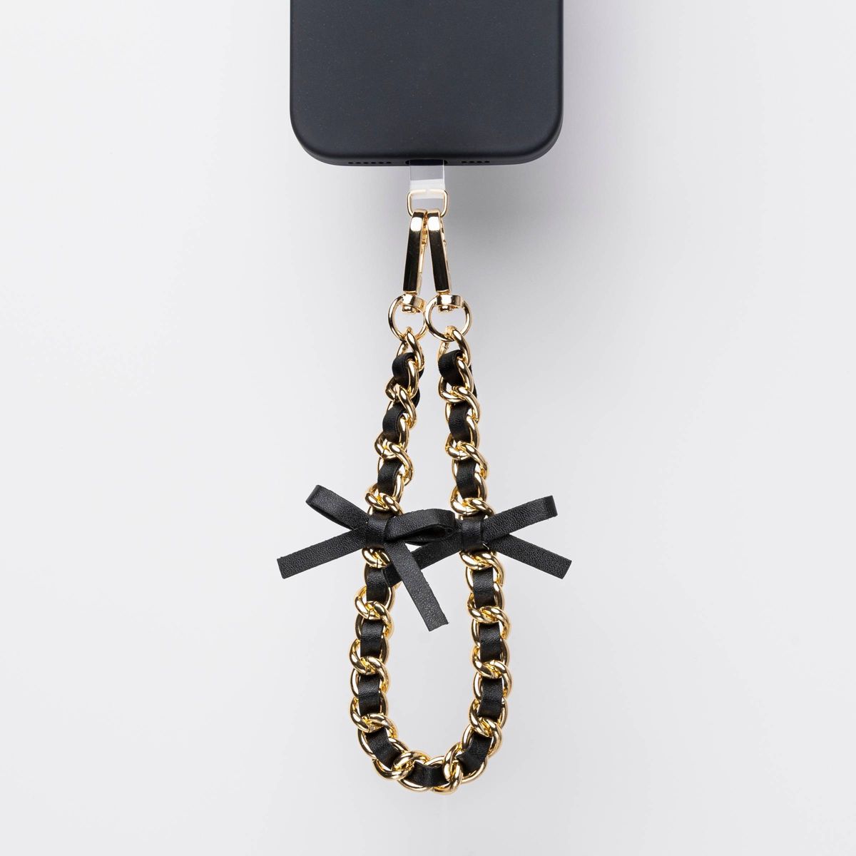 Hello Lux Phone Wristlet - Golden Chain with Black Faux Leather Bows