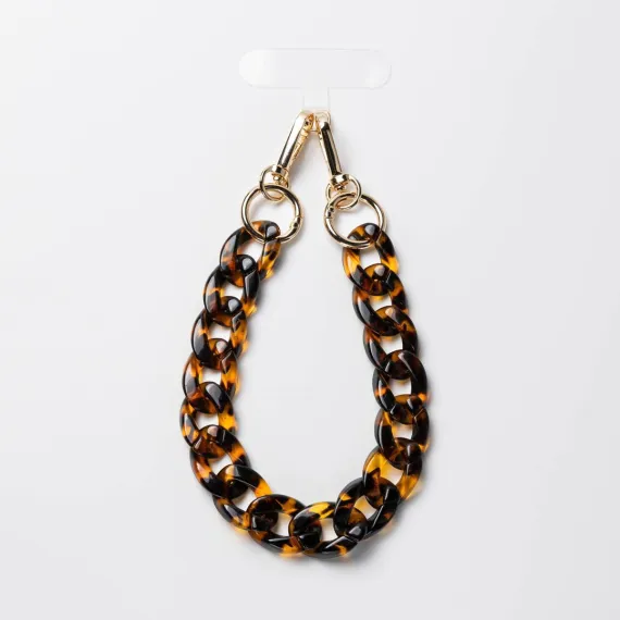 This Hello Lux Phone Wristlet adds a warm, polished touch to any look. The shiny tortoise resin link chain feels classic and fresh, making it an easy way to elevate your style. The included universal phone connector card provides secure attachment to most phone cases. You can also clip this versatile wristlet strap to a small purse with the lobster-claw clasps. Its lightweight design rests comfortably on your wrist, keeping your hands free and your phone close.