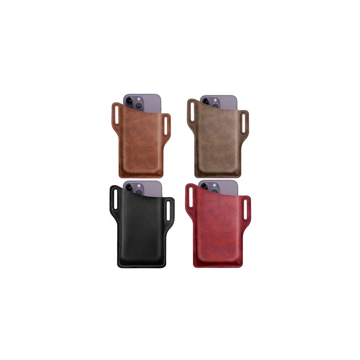 Color Brown, Coffee, Black, Wine Red Material: PU Leather Dimensions: 6.56 x 3.96 Belt Loop Size: Fits Standard Size Belts Style: Curved Edge Design Compatible Models: Any Phone Size Up to 3.96 Wide (For iPhone, Samsung, Etc)