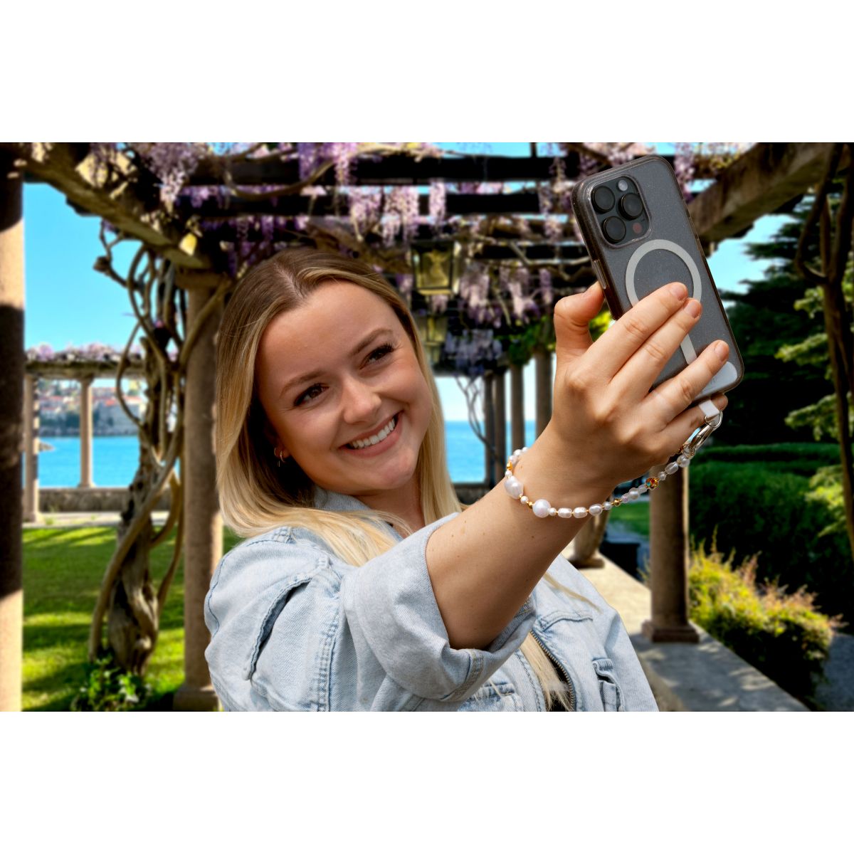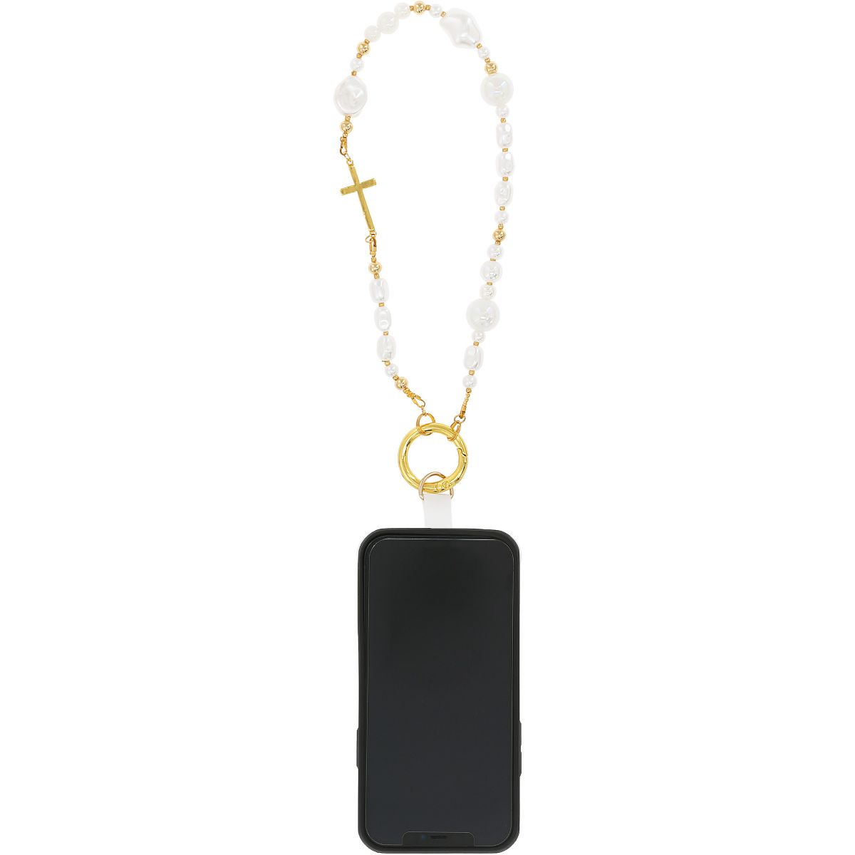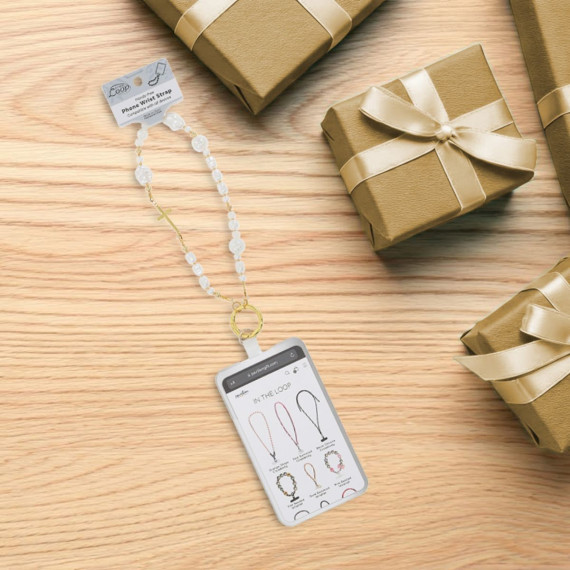 Carry your faith close and your phone even closer with Pavilion’s Cross Beaded Phone Wristlet from the In the Loop collection. Featuring lustrous pearl-like beads in tones of white and soft gold, this 11.75" wristlet is adorned with a radiant cross charm that adds spiritual meaning to your everyday accessories. The gold clasp connects easily to the included clear phone tab, which fits between most phones and cases to provide a reliable hands-free setup. Whether used as a daily reminder of your beliefs or a beautiful gift for someone you care about, this wristlet offers style, substance, and significance in one elegant piece.
