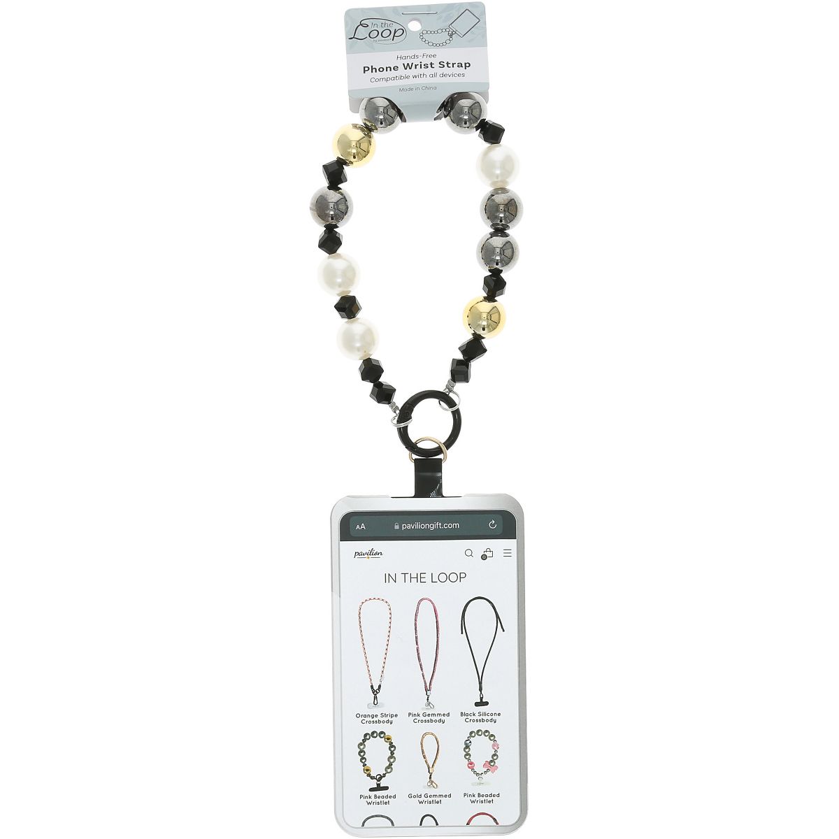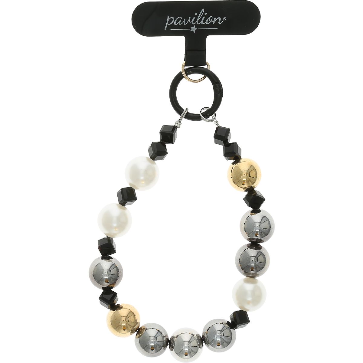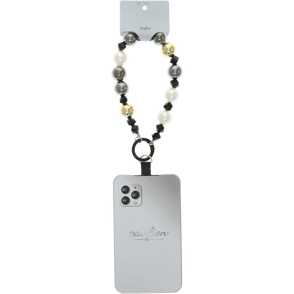- IN-HOUSE DESIGN: The metallic gold beads paired with bronze tones give this wristlet a luxurious, eye-catching appeal. Pavilion's branded tab makes attaching it to your phone secure and simple.