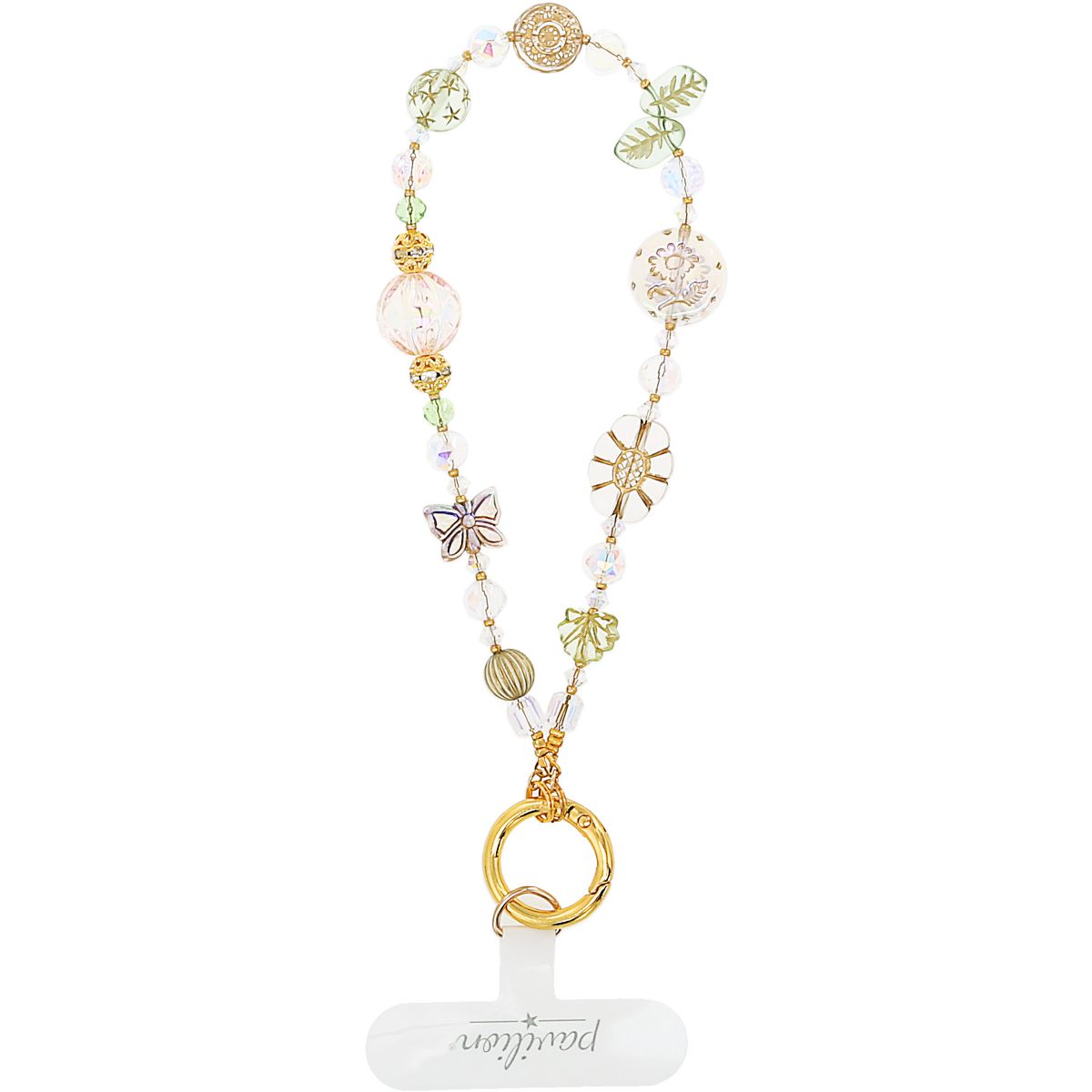 Connect to the outdoors while staying hands-free with Pavilion’s Nature Beaded Wristlet. Inspired by forest foliage and natural textures, this phone accessory features a soft green and earthy palette of beads in unique floral and leaf shapes. Designed for daily convenience with a golden clasp and included phone tab, this 11.75" strap wraps around your wrist to keep your phone secure and your style effortlessly grounded. Whether you're hiking, running errands, or just appreciating the beauty in everyday life, this wristlet is a subtle reminder to stay rooted.