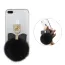 REIKO PHONE HOLDER/ FINGER LOOP GRIP WITH RHINESTONE SOFT PUFFY FUR BALL IN BLACK