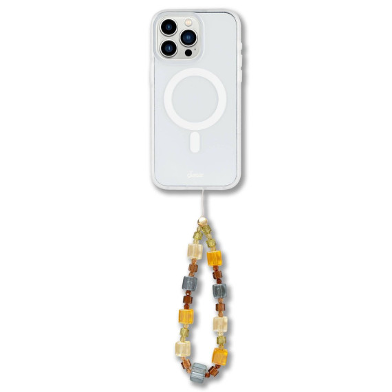 Featuring a mix of earthy crystal-inspired beads in rich amber, teal, and green tones, this strap is the perfect accessory for a retro-meets-modern look. The detachable wristlet keeps your phone secure and hands-free, while doubling as a chic style accent. Easy to install through an opening in your phone case — no adhesive needed.