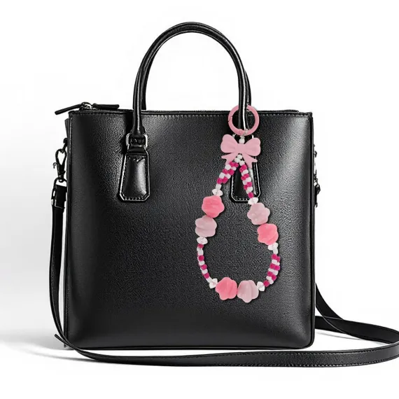 Unique Bargains Bow Phone Charm Pink White 1 Pc