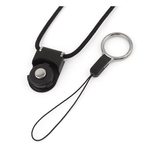 Unique Bargains Detachable Ring Neck Strap Lanyard Black for Cell Phone ID Card Holder