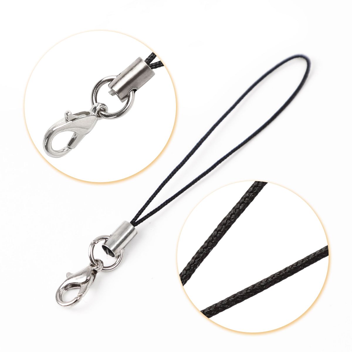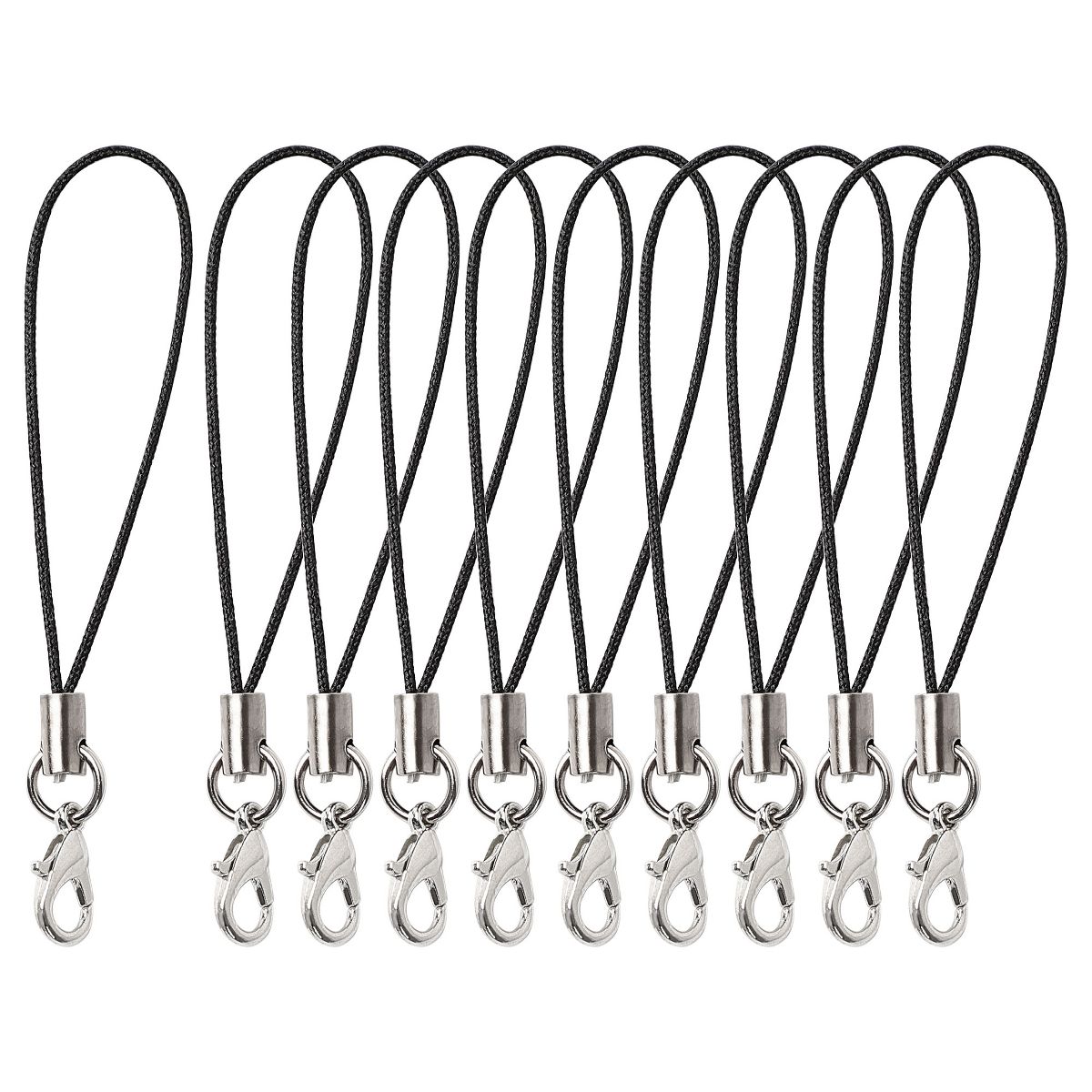 Unique Bargains Nylon Metal Durable Portable Cell Phone Key String Black 15 Pcs