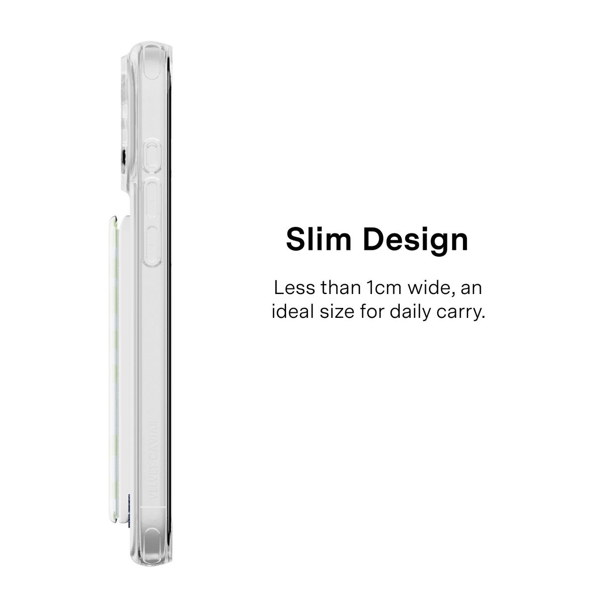 A Smarter, Sleeker Way to Wallet. Streamline your everyday carry with this slim magnetic phone wallet that securely holds up to 4 essential cards. It snaps onto your phone with high-strength, MagSafe-compatible magnets—no adhesive needed. The discreet design keeps things minimal while ensuring you'll never misplace your wallet again. Plus, built-in RFID protection keeps your personal information safe. Modern, secure, and made to move with you.