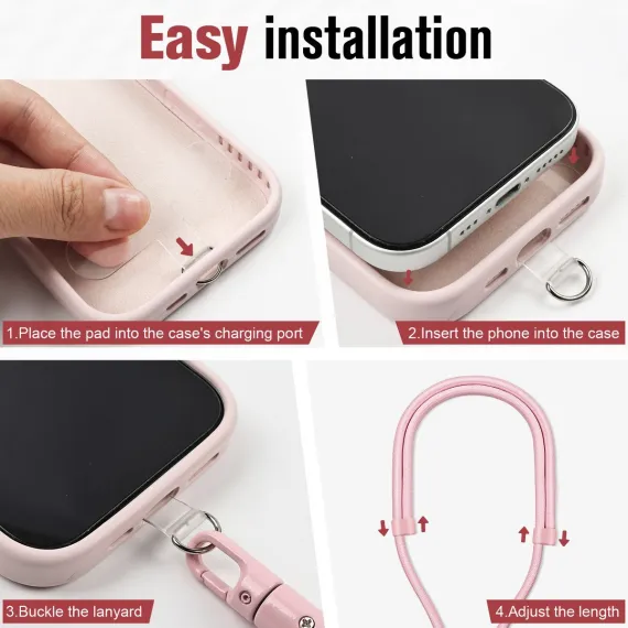 Vena Phone Lanyard Crossbody Phone Strap, Universal Cell Phone Lanyard Strap with Adjustable Lanyard for Phone Neck Holder for iPhone Android, Pink