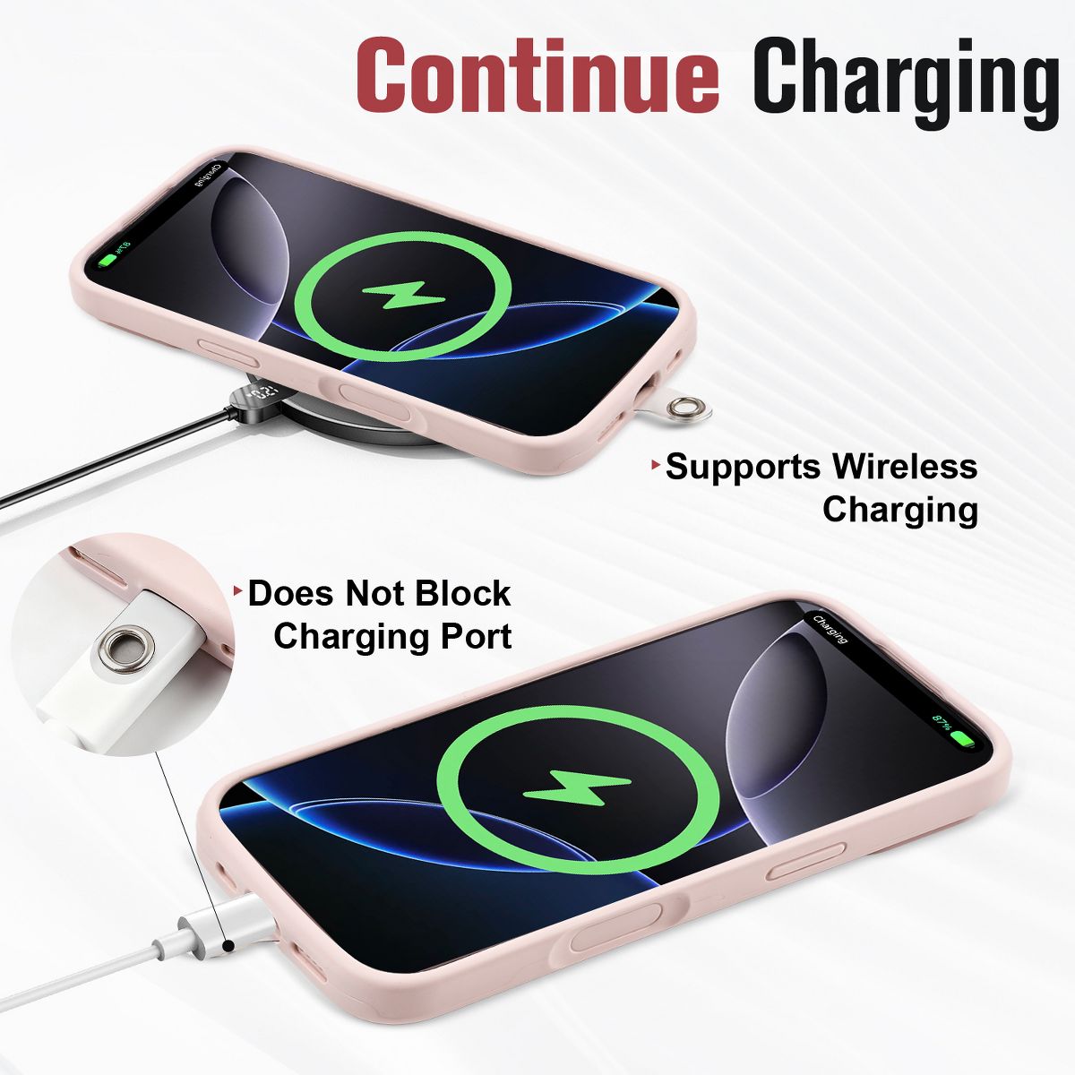 [Unobstructed Charging] Continue to keep your device charged with uninterrupted access to your charging cable port. Vena’s phone lanyard’s plastic phone pad does not impede your case’s ability to allow wireless charging.