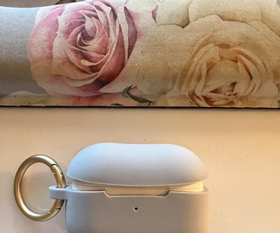 The Heyday AirPod Pro case is so much better than the ones you’d find on other major online retailer websites because it has little suction cups inside the lid cover so that the top half doesn’t pop off the AirPods case. I also really liked that the key ring isn’t attached to the case via a flimsy little jump ring (which many other keychain style silicone cases have) but rather directly to the silicone case itself. The case is not difficult to remove but stays on well, and the metal carabiner has a relatively strong spring.