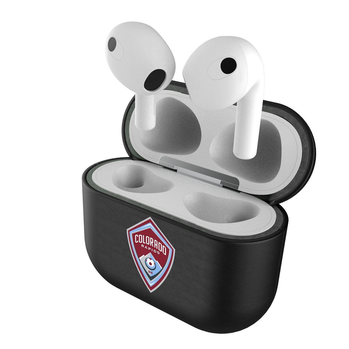 Give your AirPods a safe and stylish upgrade with this officially licensed, high quality, black leatherette AirPod case cover with full color print. This case is all about merging protection with that proud fan feeling. Case has peek hole to see charging light. Designed and decorated by Keyscaper in Tualatin, Oregon, USA.