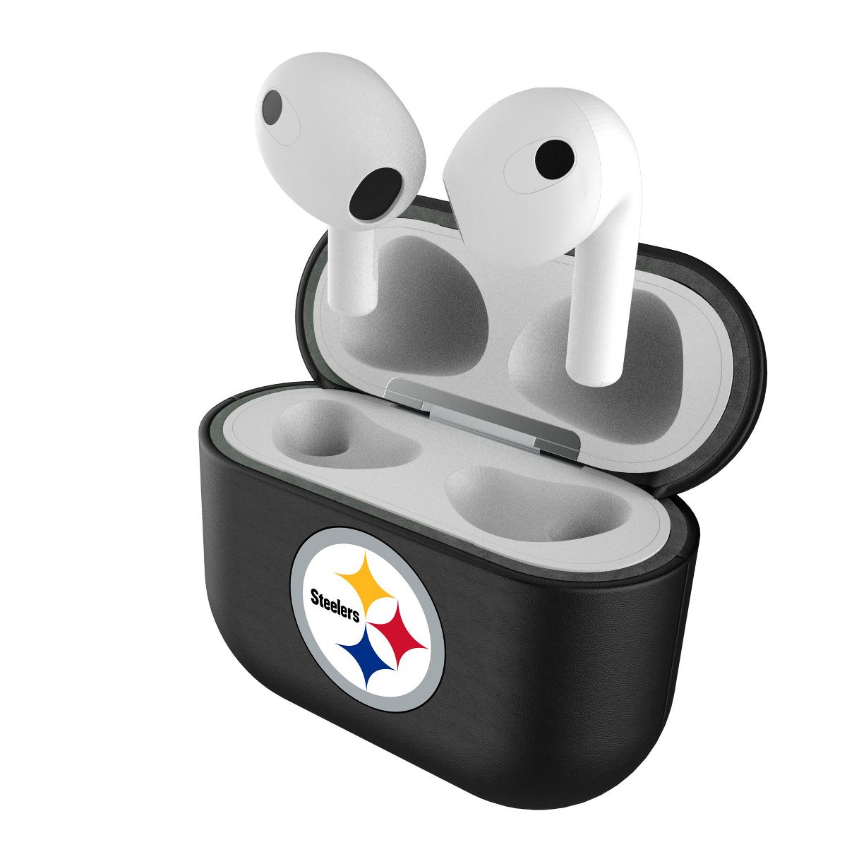 Give your AirPods a safe and stylish upgrade with this officially licensed, high quality, black leatherette AirPod case cover with full color print. This case is all about merging protection with that proud fan feeling. Case has peek hole to see charging light. Designed and decorated by Keyscaper in Tualatin, Oregon, USA.