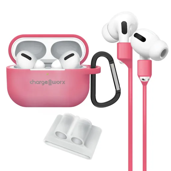 Enhance your favorite pair of earbuds with Chargeworx's comprehensive accessory kit. Designed to be compatible with the Apple AirPods Pro earbuds, this kit includes four essential items that will revolutionize the way you use and protect them. Firstly, the dustproof case provides the ultimate defense for the earbuds. Crafted from high-quality materials, it shields your earbuds from dust, dirt, and scratches, ensuring they remain in pristine condition. The precise design guarantees a snug fit, allowing easy access to the charging port and pairing button. With this protective case, you can confidently carry your earbuds wherever you go, knowing they are safe and secure. The carabiner is a convenient addition to the accessory kit, allowing you to attach your earbuds to your bag, belt loop, or keychain. No more worrying about misplacing or dropping them! The sturdy carabiner always keeps them within reach, ensuring you never have to fumble around searching for them again. Whether you're on the go or at the gym, your earbuds will always be easily accessible. For those who want an added layer of security, the magnetic neck strap is the perfect solution. Its strong magnets securely attach to the earbuds, allowing you to wear your earbuds around your neck when you're using them. No more searching through pockets or bags to find your earbuds when you want to listen to music or take a call! The magnetic neck strap keeps them within reach, providing both convenience and peace of mind. Lastly, this kit includes a watch band holder, which is compatible with various watch bands and smartwatches. This innovative accessory allows you to attach your earbuds to your watch band, making it an all-in-one solution for your wrist. Whether you're going for a run or working out at the gym, your buds will be readily accessible on your wrist, eliminating the need for extra pockets or bags.