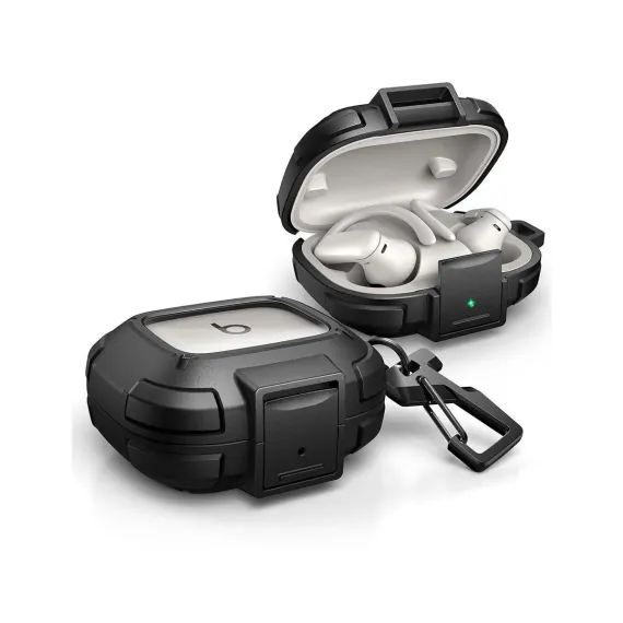 Dexnor for Beats Powerbeats Pro 2 Case with Drop-Proof Lock, Shockproof Rugged Bumper Cases with Carabiner & Keyring & Cleaner Kit Black