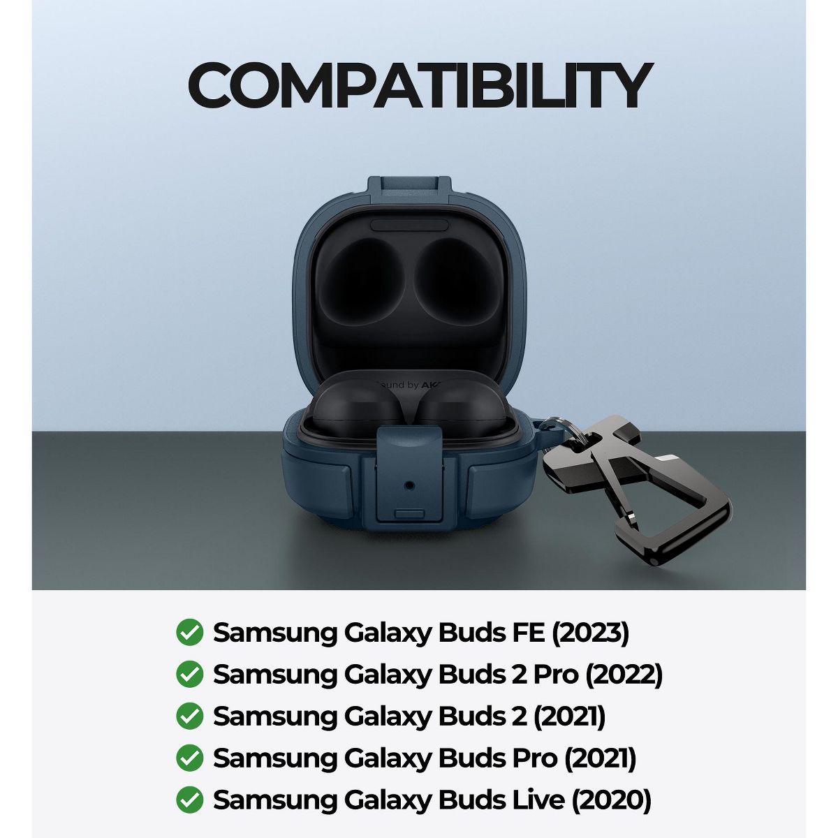 Check before purchase: This protective case is designed exclusively for Samsung Galaxy Buds FE (2023)/Buds 2 Pro (2022)/Buds 2 (2021)/Buds Pro (2021)/Buds Live (2020), and its not compatible with other models.