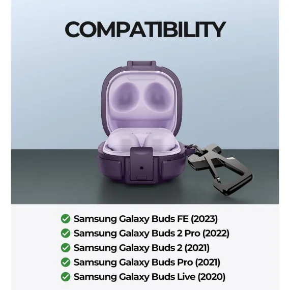 Dexnor Rugged Bumper Case for Samsung Galaxy Buds with Secure Lock, Shockproof Cover and Carabiner