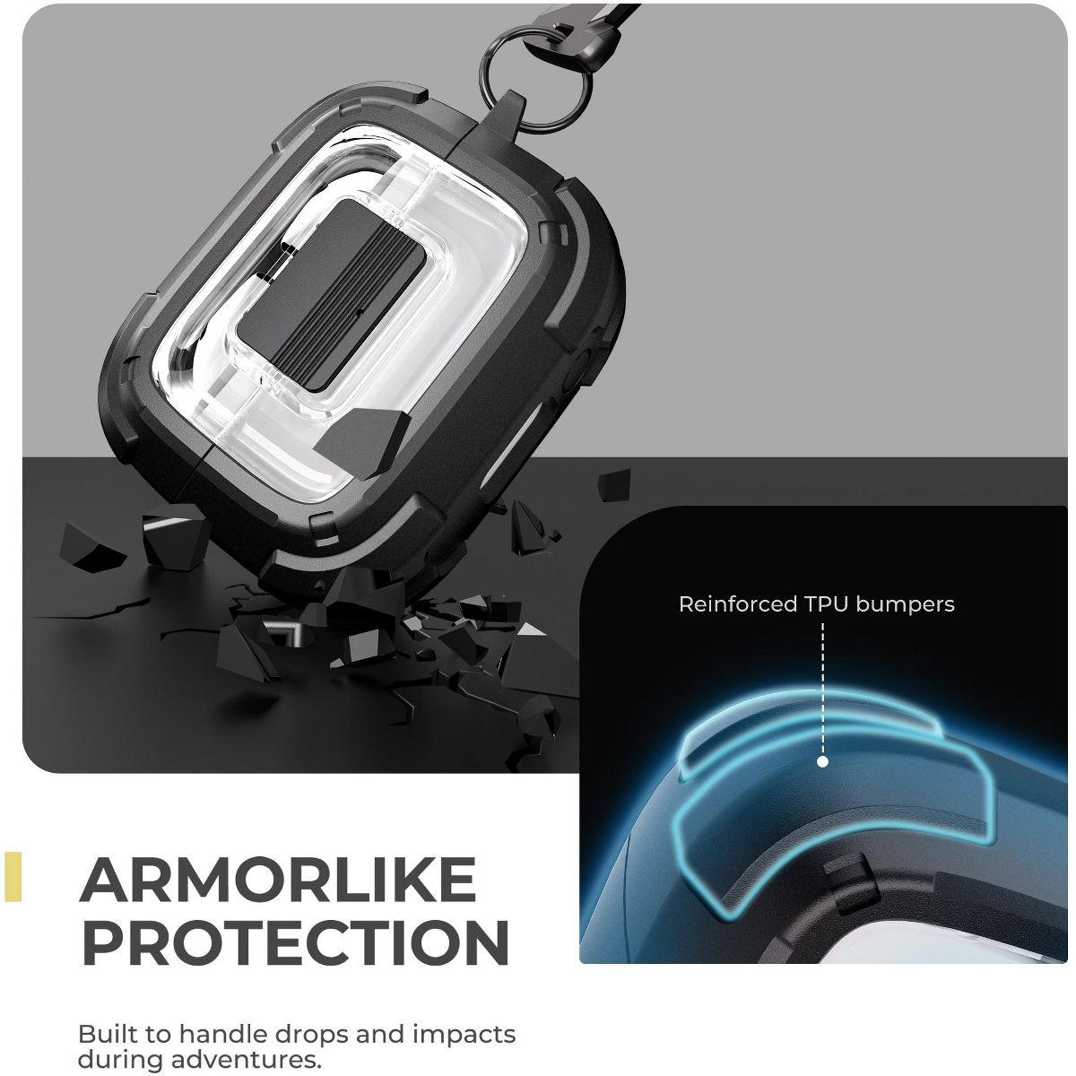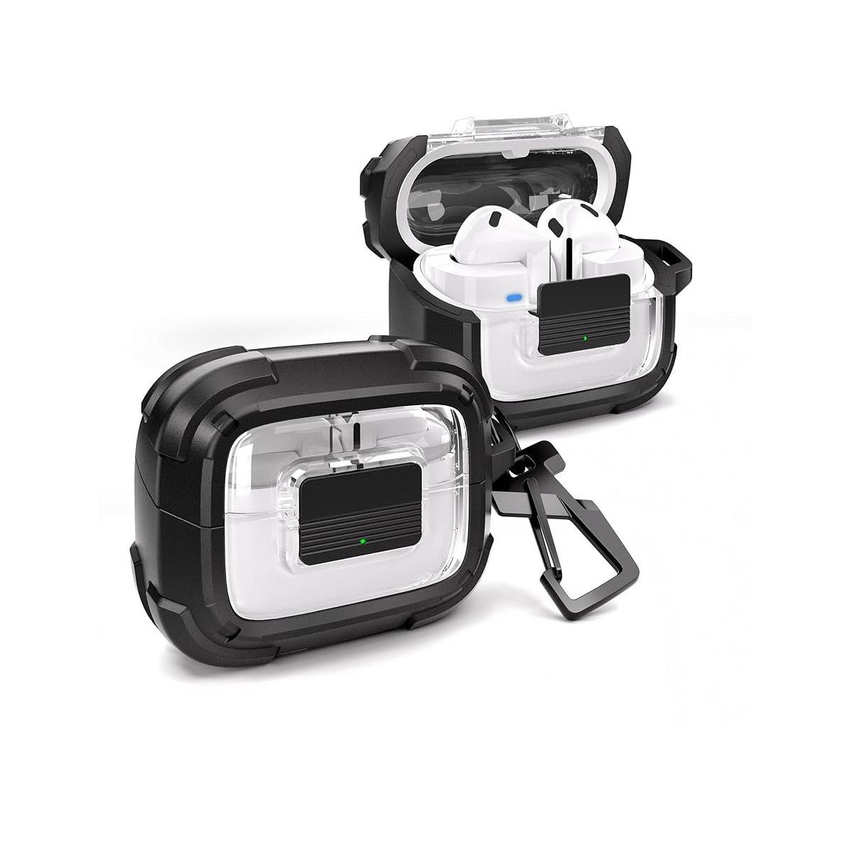 Dexnor Rugged Bumper Case for Samsung Galaxy Buds3 Pro and Buds3 (2024) Cases with Secure Lock, Clear Cover with Carabiner & Keyring Black