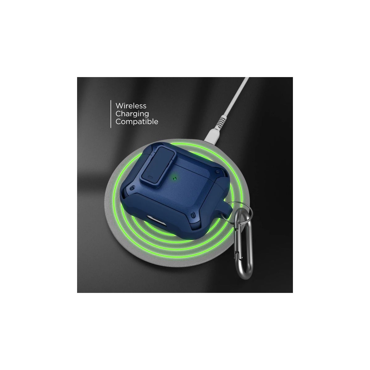 Safety and functionality all in one. Designed for strength with reinforced corners and 2 layers of ultra-durable shockproof protection. Prevent loss with the locking lid that safely secures your AirPods when not in use. Comes with a carbineer to attach to your backpack or pant loop for extra security and ease of use.